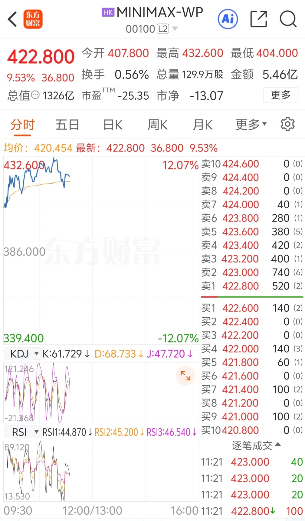 上证报中国证券网讯1月27日,MINIMAX-WP轰动走强,一度涨超12%。搁置11时21分,该股涨幅回落至9.53%,报422.8港元/股。